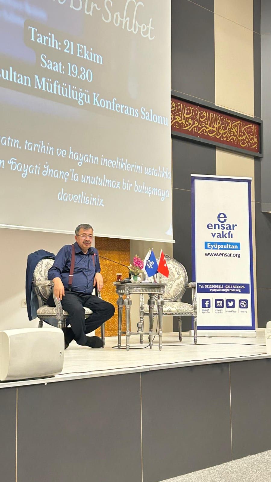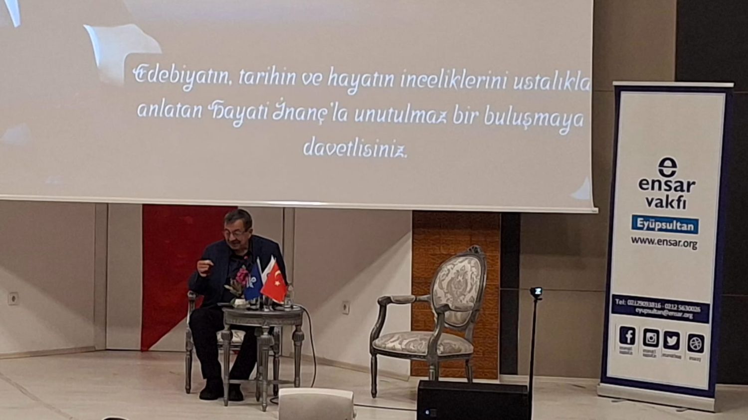 Ensar Vakfı Eyüpsultan Şubesi, Eğitimci-Yazar Hayati İnanç’ı Eyüpsultan Müftülüğü Konferans Salonu'nda konuk etti. Yoğun katılımın olduğu etkinlikte, İnanç, dinleyicilere unutulmaz bir sohbet sundu.