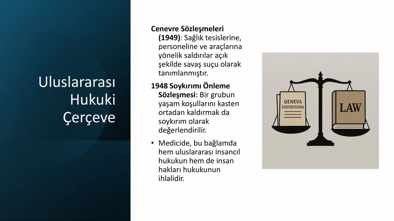 Dr. Araç, Cenevre Sözleşmeleri’nin ve 1948 Soykırımı Önleme Sözleşmesi’nin açık hükümlerine rağmen saldırıların cezasız kaldığını ifade etti.