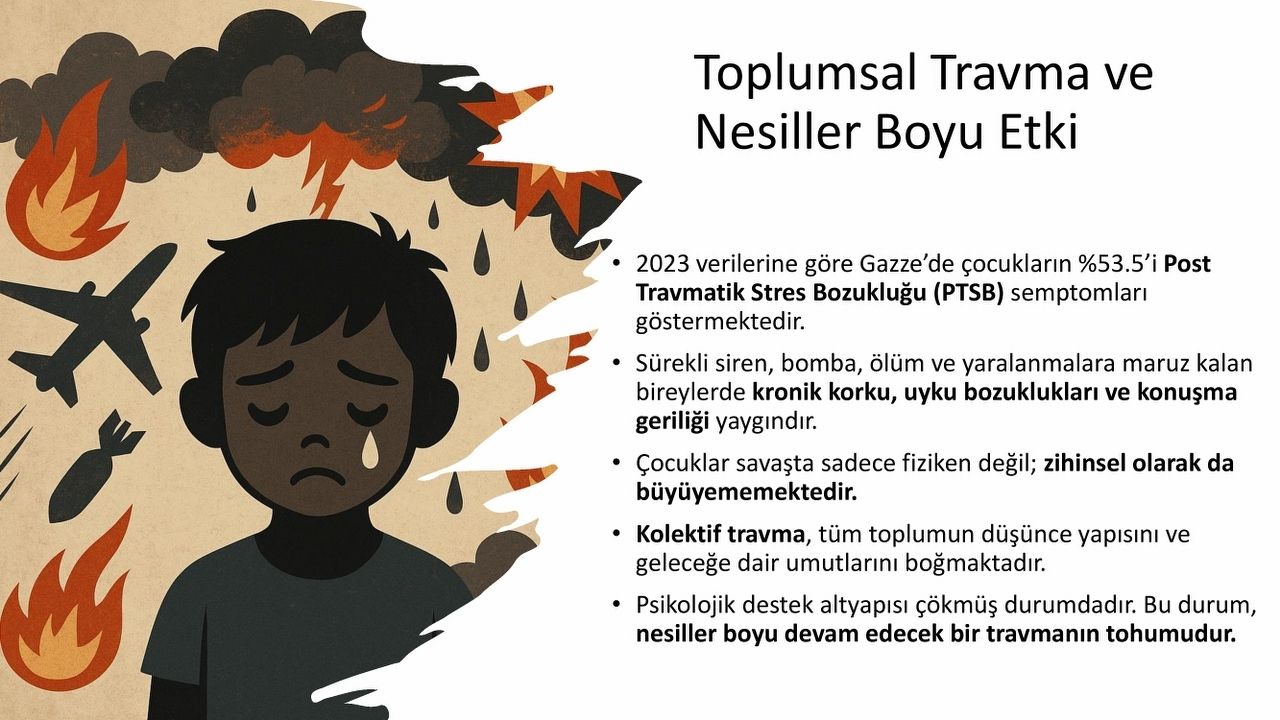 Sunumun en sarsıcı bölümü, “Gazze’de Çocuk Olmak” başlıklı bölüm oldu. Dr. Araç’ın bu kısımda kullandığı ifadeler salonda derin bir sessizlik yarattı.
