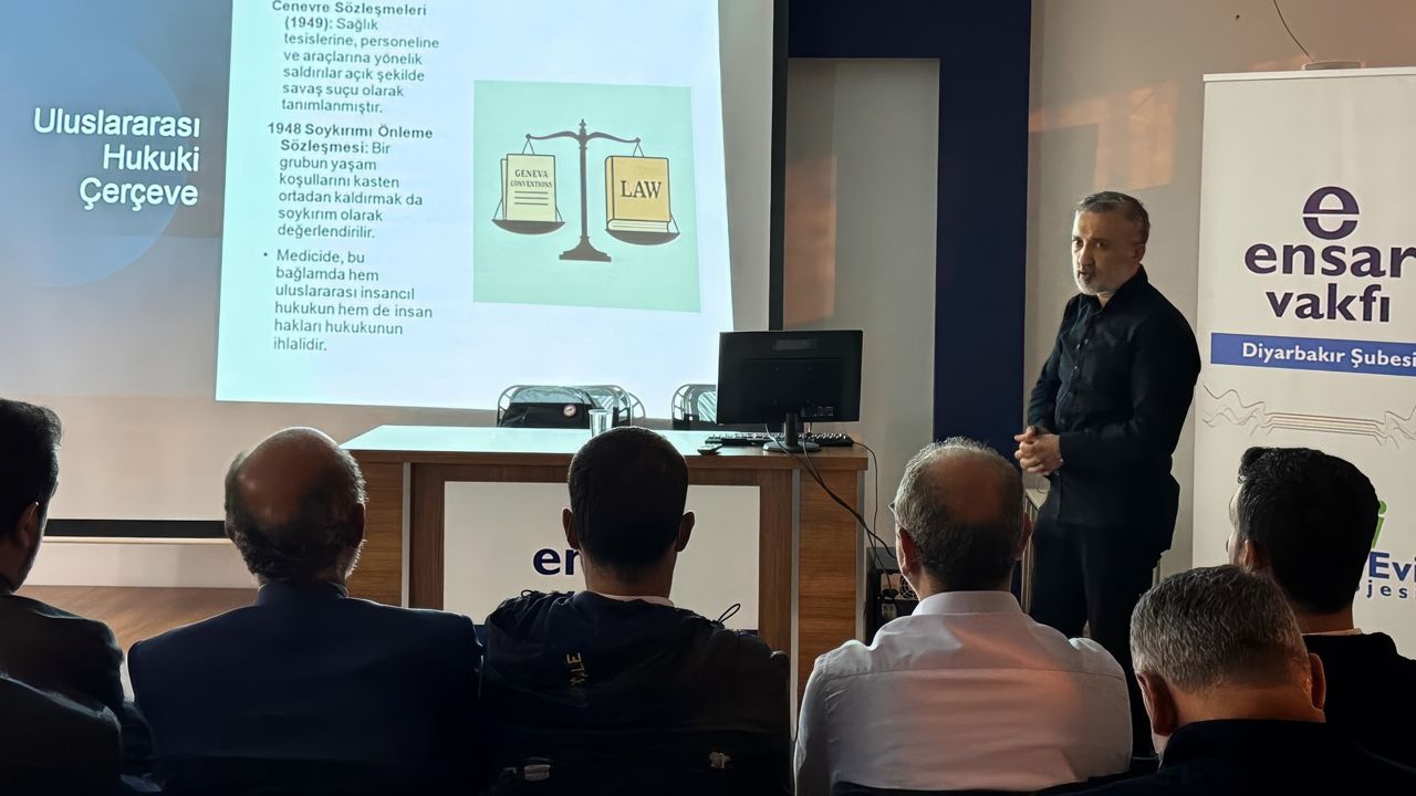 Ensar Vakfı Diyarbakır Şubesi, 30 Kasım Perşembe günü anlamlı bir etkinliğe ev sahipliği yaptı. Dr. Eşref Araç’ın konuşmacı olduğu “Gazze’de Sağlık Hizmetleri: Kriz, Müdahale ve Politika” başlıklı sunumda, Gazze’de yaşanan sağlık felaketi, “Medicide” kavramı üzerinden tüm boyutlarıyla ele alındı.