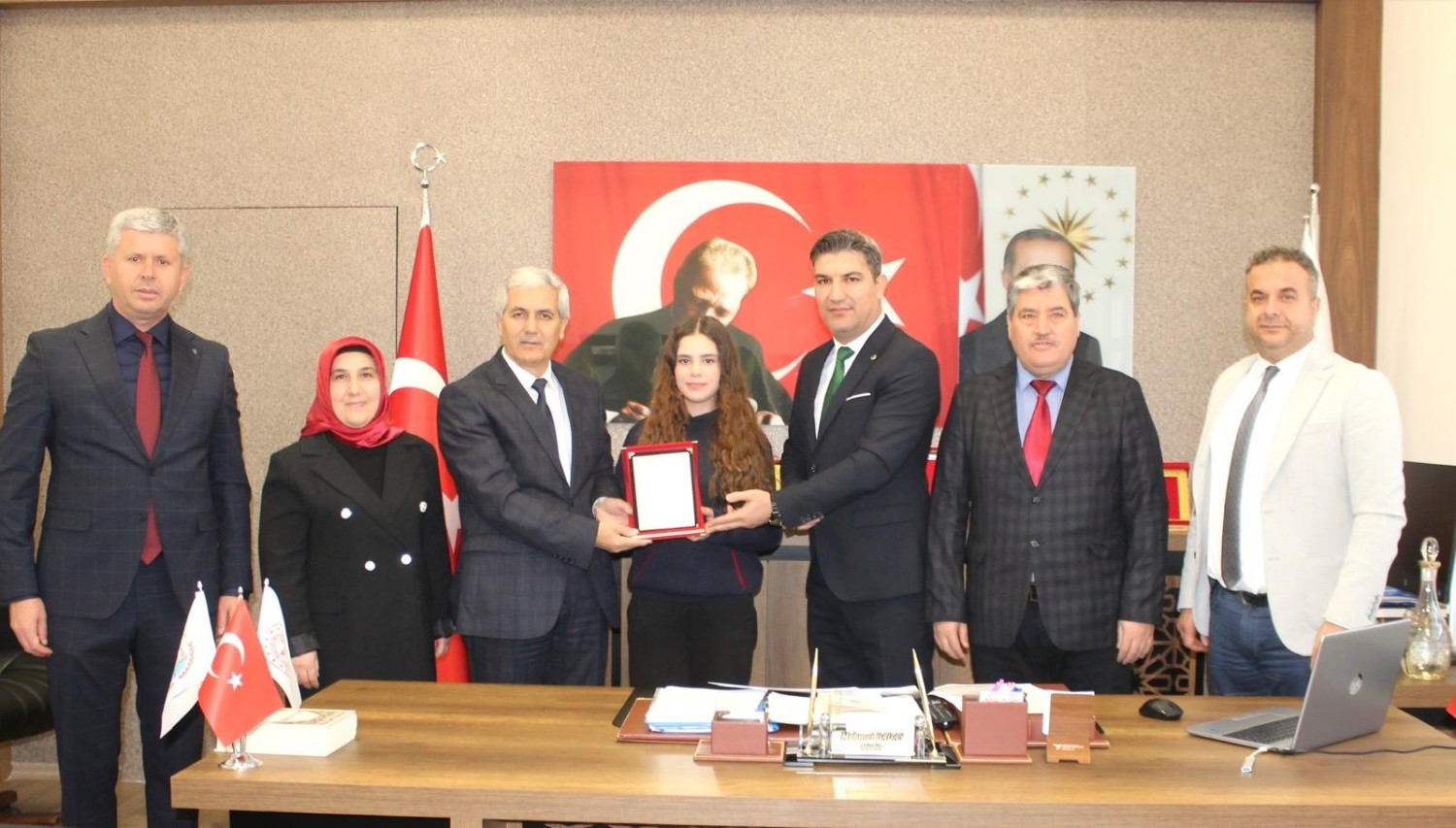 Türkiye genelindeki yarışmada dereceye giren öğrenci, ilçe protokolü ve vakıf yetkilileri tarafından tebrik edildi.